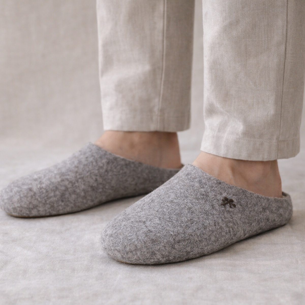 Les fibres resserrées de la laine feutrée empêchent la poussière de s’incruster en profondeur. Cependant, il est conseillé de secouer les chaussons à l’extérieur ou de passer un coup d’aspirateur de temps en temps.