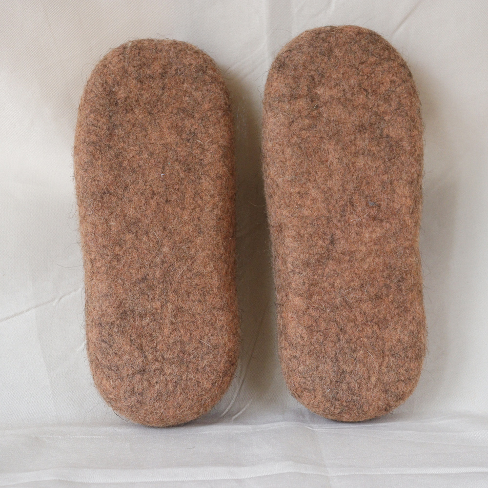 Chaussons en feutre de laine Mérinos 100% naturels élaborés par le savoir-faire millénaire du feutrage au Kirghizistan.