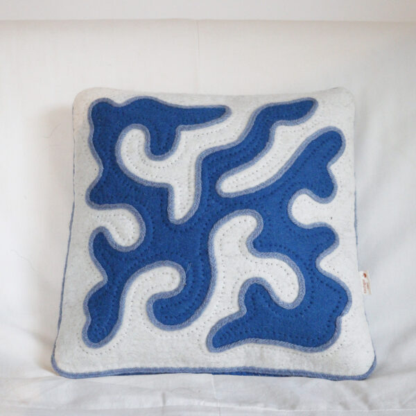 Housses de coussins de sol découpées et brodées à la main. Conçu entièrement en feutre de laine artisanal et fils de laine, puis doublée en coton.