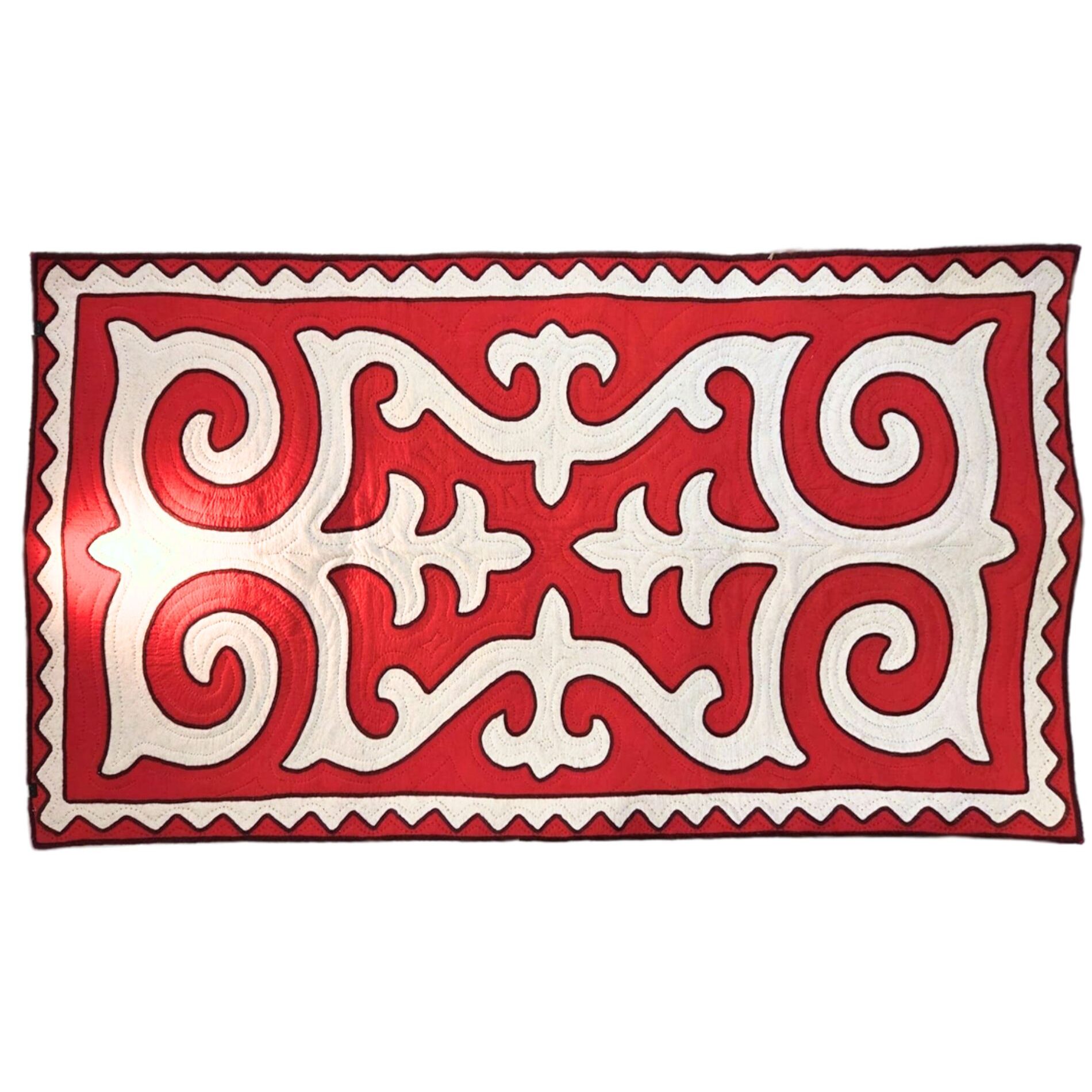 Le Shyrdak Harmonie incarne les liens subtils tissés entre les générations, entre la nature et l’homme. Il s’appuie sur la puissance du contraste entre un rouge profond et un blanc éclatant. Ses motifs traditionnels, à la fois fluides et structurés, traduisent un équilibre harmonieux entre vitalité et apaisement.