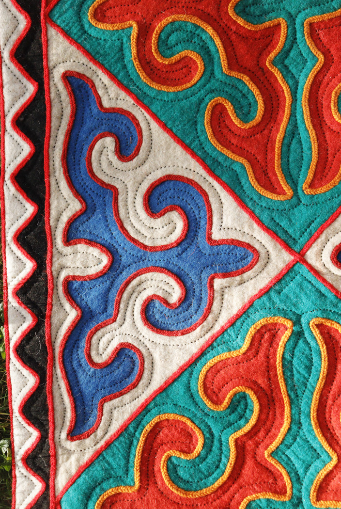 Chaque Shyrdak demande entre deux et six semaines de travail minutieux pour assembler, coudre et broder les motifs.