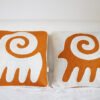 Housses de coussins découpées et brodées à la main. Conçu entièrement en feutre de laine artisanal et fils de laine, puis doublée en coton.