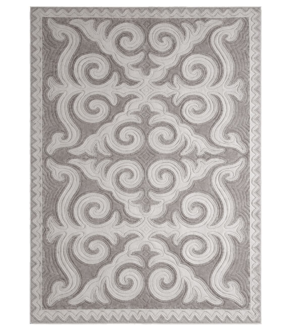 Voici une création qui transmet un sentiment de sérénité par les imposants et doux motifs traditionnels, couplés aux teintes naturelles et apaisantes.