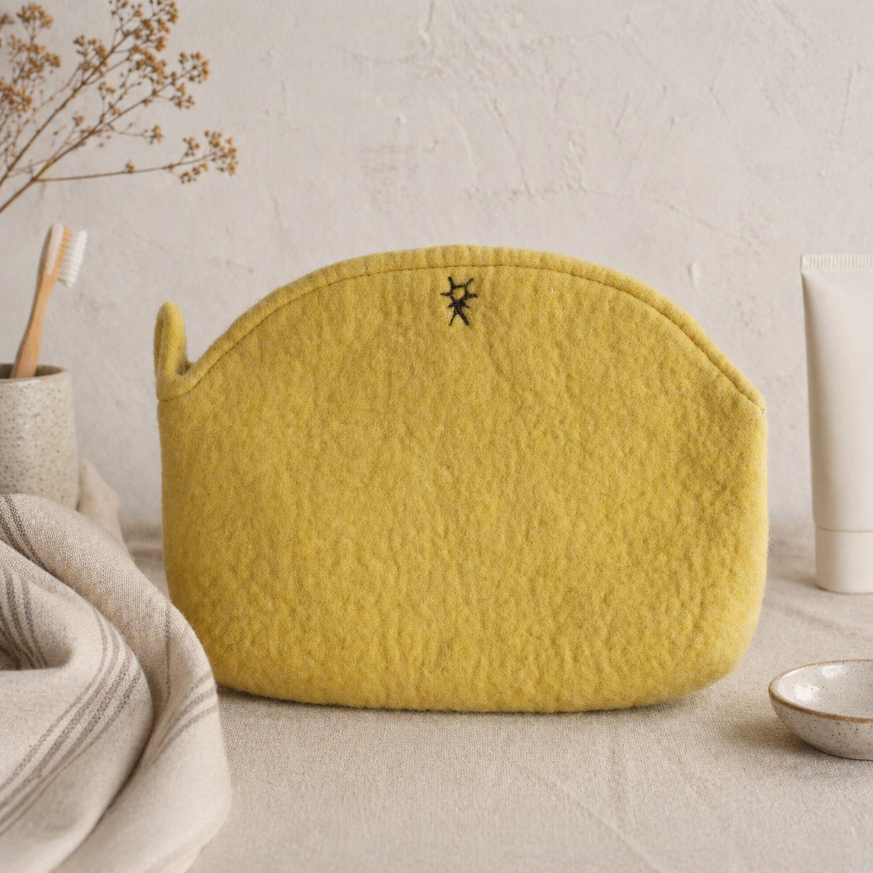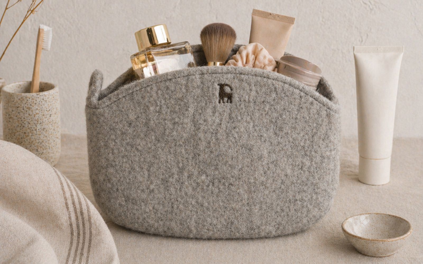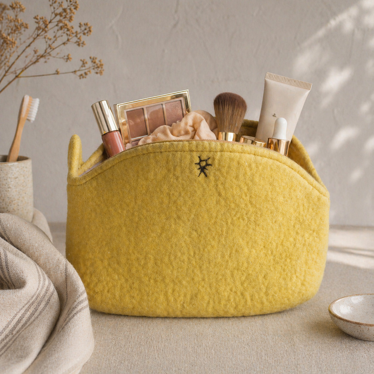 Idéale pour organiser vos cosmétiques, cette trousse en feutre de laine allie élégance et protection au quotidien.