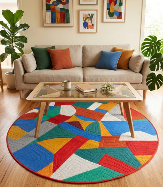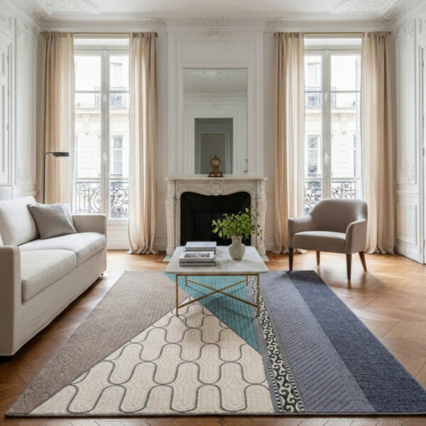 Grâce à ses motifs géométriques et à ses jeux de contrastes, le Shyrdak traditionnel s’intègre parfaitement dans les intérieurs contemporains.